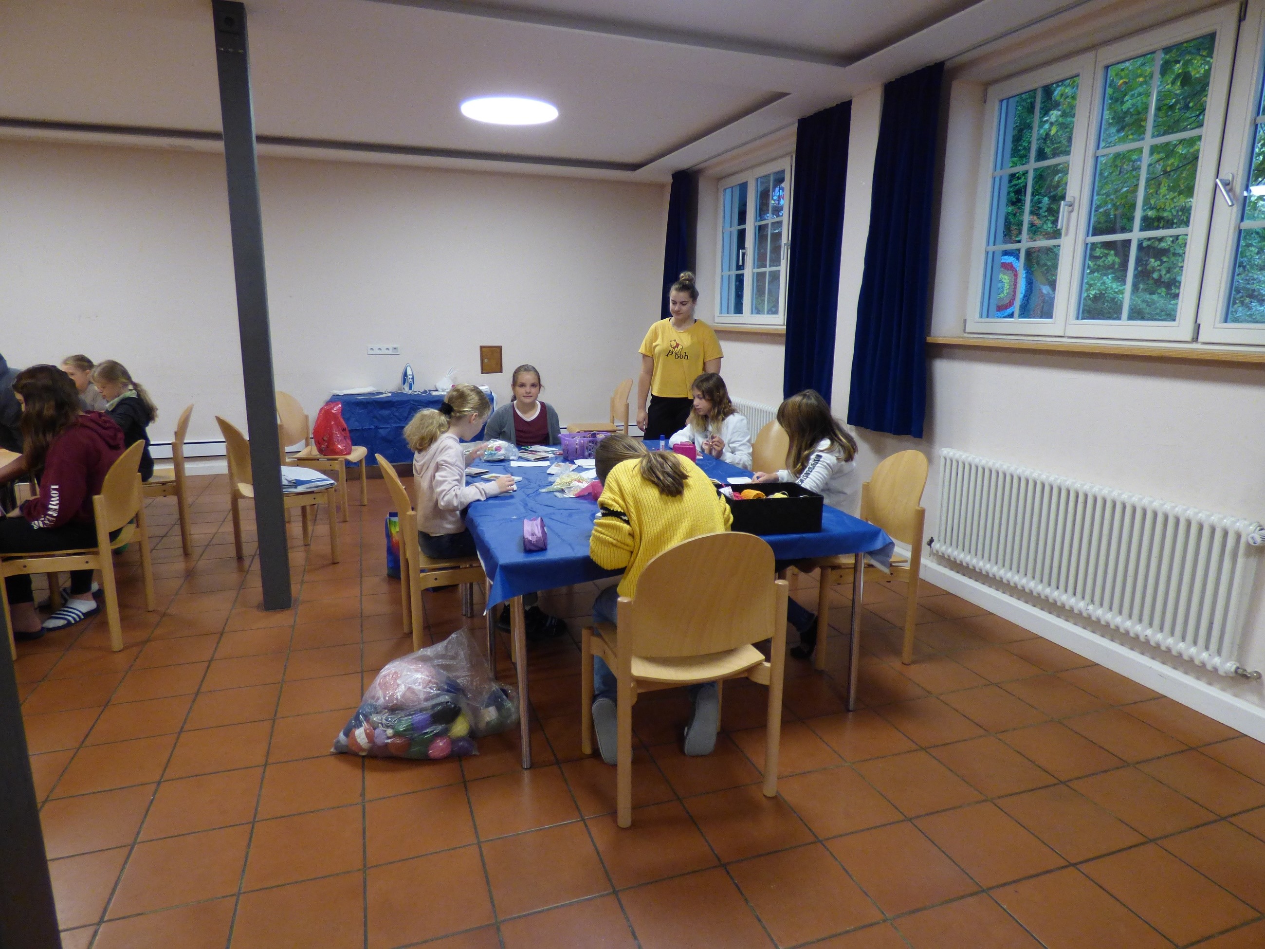 Am nächsten Tag regnete es leider den ganzen Tag, weshalb wir nicht nach draußen gehen konnten. Dafür wurden morgens Kissen, Armbänder, Beutel und die Deko für den Abend gebastelt und mittags Aufführungen einstudiert. Am Abend gab es Würstchen vom Grill und danach warfen sich alle in Schale. Der große Raum bot mit einer Bühne den perfekten Rahmen für unseren Casinoabend. Mit Cocktails in der Hand genossen wir zunächst die großartigen Aufführungen der Kids und kleine improvisierte Showeinlagen der Übungsleiter. Danach begann der Spieleabend mit Brett- und Kartenspielen, Musik und einer Polaroid-Kamera.